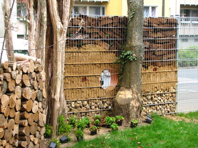 Umwelterlebniszäune nutzen die oft noch ungenutzten Zaunflächen für vertikale Einsichten z.B. in den Boden, in das Holz, aber auch in Umweltprobleme wie den Müll.